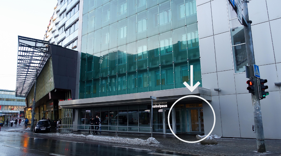 Sissepääs parklapoolsest uksest. Asume 2. korrusel, kabinetid 201-203.
